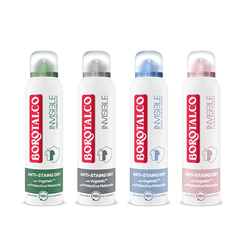 Aluminijeve soli su dokazano učinkoviti i sigurni antiperspiranti koji imaju sposobnost umanjiti znojenje, držati pod kontrolom hiperhidrozu i posljedično ograničiti pojavu neugodnih mirisa. Međutim, najosjetljiviji tipovi kože mogu imati nisku toleranciju na te soli. Iz tog razloga, poštujući potrebe čak i onih tipova kože kojima je potrebna posebna pažnja, stvorili smo liniju Borotalco Pure, dezodoranse bez aluminijevih soli i alkohola* koji se, usprkos nedostatku aluminijevih soli i alkohola, garantirano bore protiv znojenja i neugodnih mirisa, što i tražite u dezodoransu. Nježnost uz snagu učinkovitosti u jednom dezodoransu.