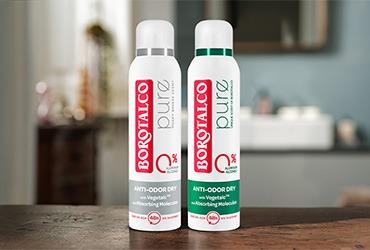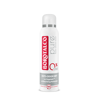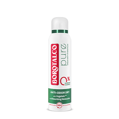 Aluminijumove soli su antiperspiranti sa dokazanom efikasnošću i sigurnošću koji umanjuju proizvodnju znoja, drže znoj pod kontrolom i samim tim, ograničavaju nastanak neprijatnih mirisa. Međutim, osetljiviji tipovi kože mogu imati nizak nivo tolerancije prema ovim solima. Zbog toga, kako bismo zadovoljili potrebe osetljivijih tipova kože, kreirali smo Borotalco Pure liniju, dezodoranse bez aluminijumskih soli i bez alkohola*, koji, uprkos odsustvu antiperspirantnih soli i alkohola, garantuju zaštitu od znojenja i neprijatnih mirisa koju tražite u svom dezodoransu.
